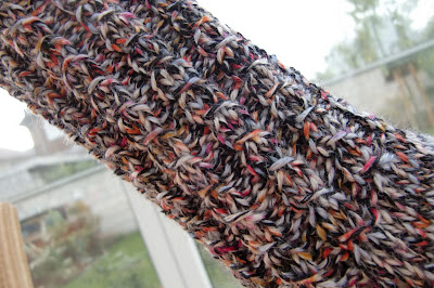 Als Muster habe ich mal wieder mein so beliebtes Muschelmuster verwendet. Und ich denke, es ist eines der wenigen Muster, das auch bei dieser unruhigen Wolle noch erkennbar ist.