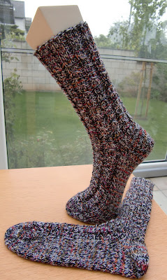 Ha, ich kanns noch. Habe ich doch tatsächlich mal wieder ein Paar Socken gestrickt. Und wegen des kalten Frühlings kann man die sogar fast noch jetzt anziehen.